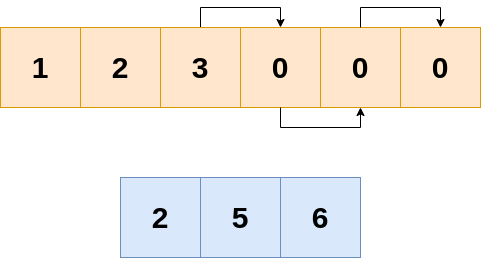 주어진 배열 1,2,3,0,0,0과 2,5,6이 있습니다.