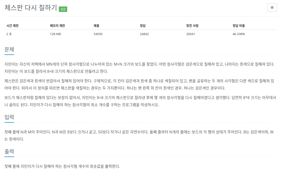 문제 출처 : https://www.acmicpc.net/problem/1018