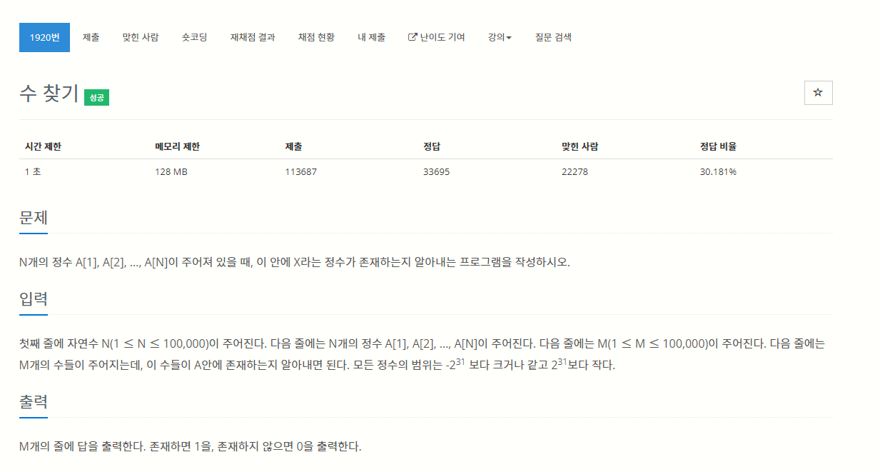 문제 출처 : https://www.acmicpc.net/problem/1920