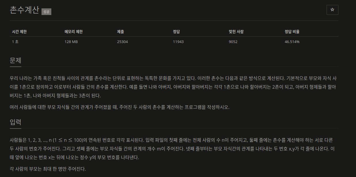 문제 출처 : https://www.acmicpc.net/problem/2644