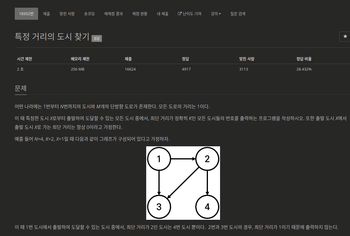 문제 출처 : https://www.acmicpc.net/problem/18352