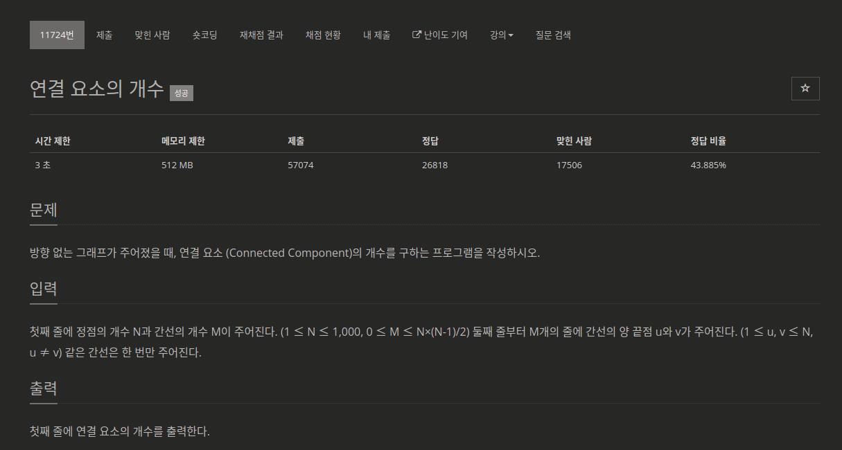 문제 출처 :https://www.acmicpc.net/problem/11724