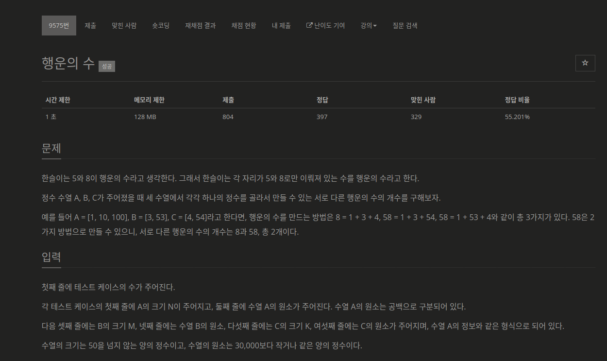 문제 출처 : https://www.acmicpc.net/problem/9575