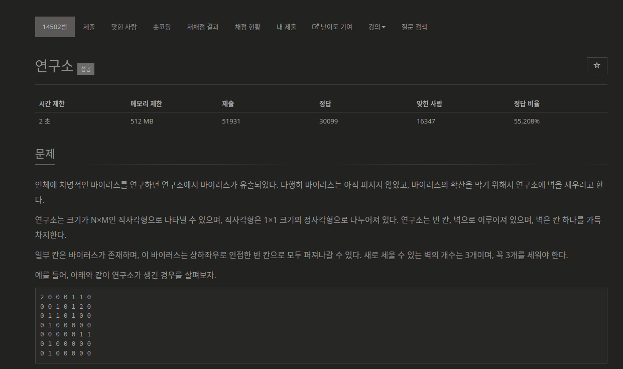 문제 출처 :https://www.acmicpc.net/problem/14502