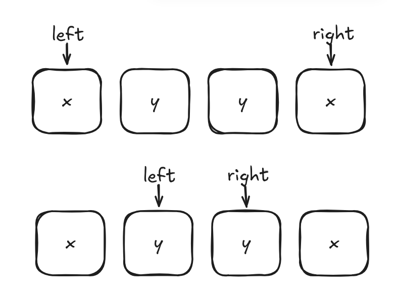 - 둘다 x가 아니라면 해당 문자열은 회문이 될 수 없다.