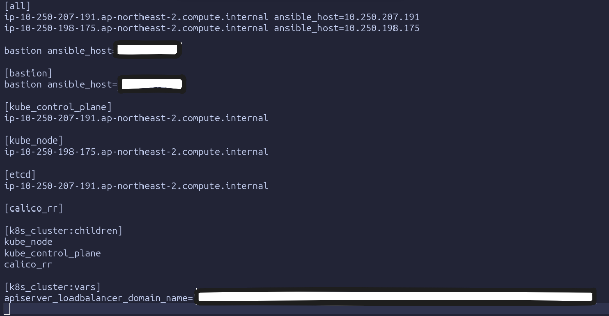 따라서 별도로 Ansible 인벤토리를 손으로 작성할 필요 없이, Terraform 실행만으로 클러스터 준비가 완료됩니다.