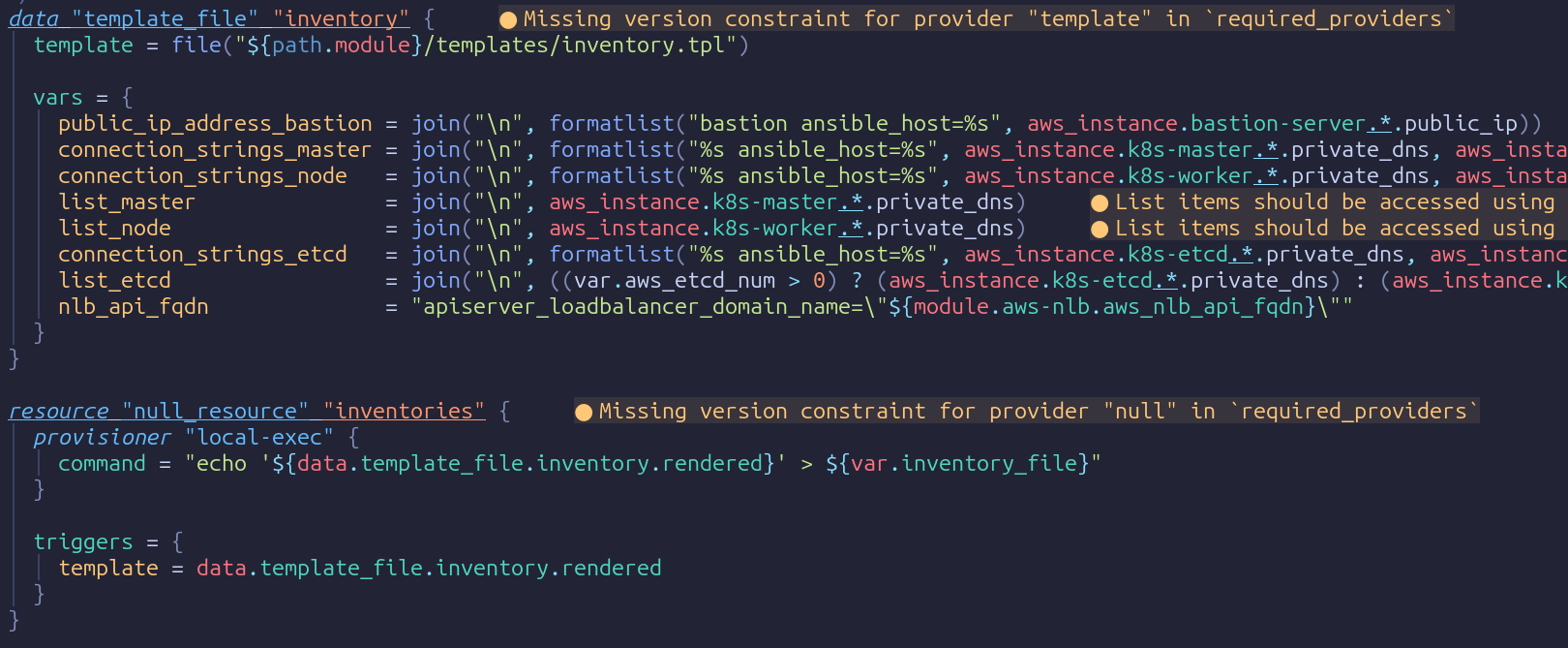 이는 create-infrastructure.tf 내부에 정의된 null_resource가 동작하여, 프로비저닝 후 inventory 디렉토리에 hosts 파일을 자동 작성해주기 때문입니다.