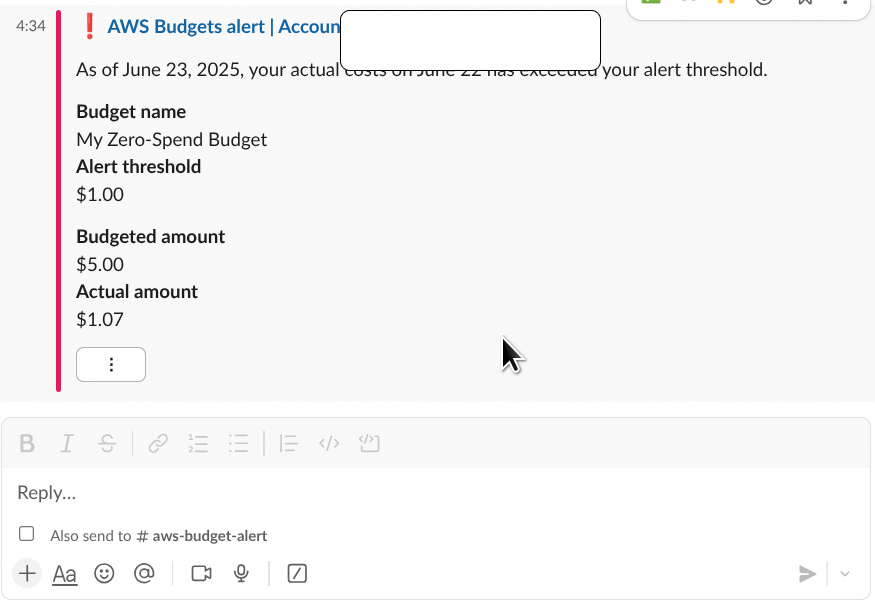 - Budgets + SNS + Slack을 활용한 알림 시스템은 설정이 간단하면서도 매우 효과적입니다.