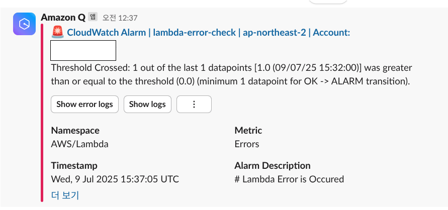 - Lambda 타임아웃 발생 시 CloudWatch Alarm 설정