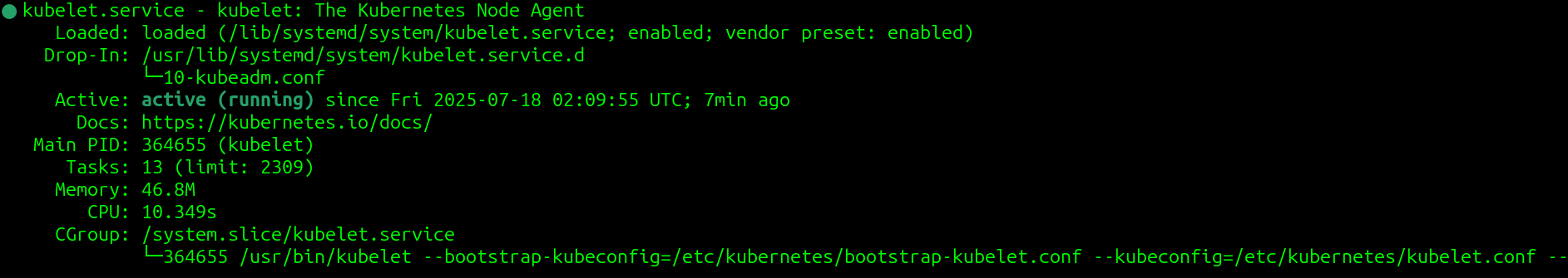 다시 한 번 systemctl status kubelet을 통해서 kubelet이 어떤 설정 파일을 사용하는지 확인하겠다.