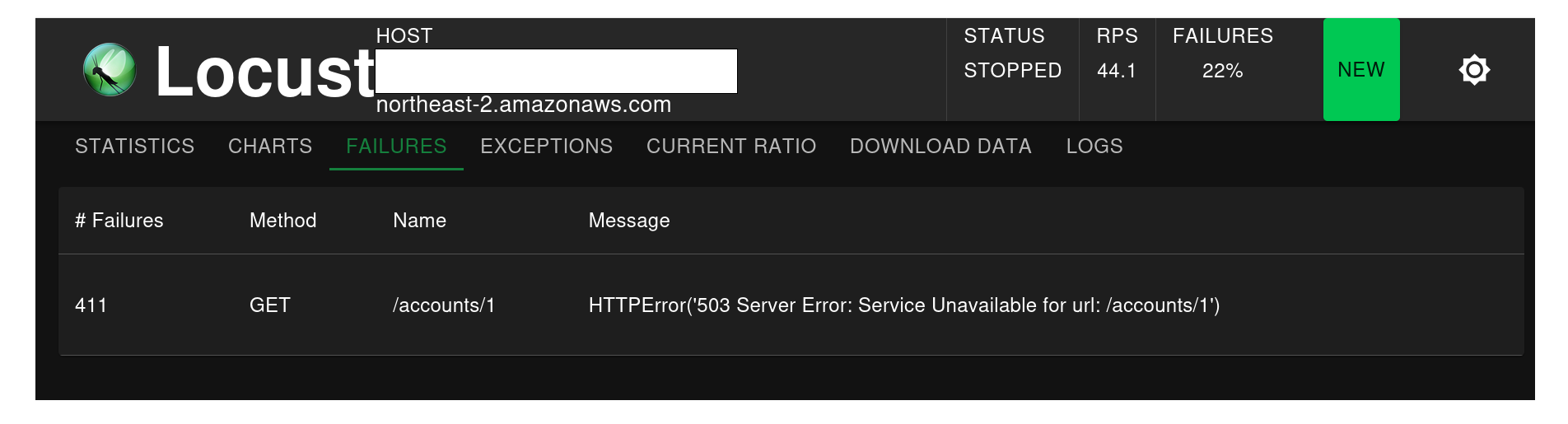 부하 테스트를 위해 Locust를 사용하여 서비스에 트래픽을 유입시켰고, 다음과 같은 문제가 발생했다.