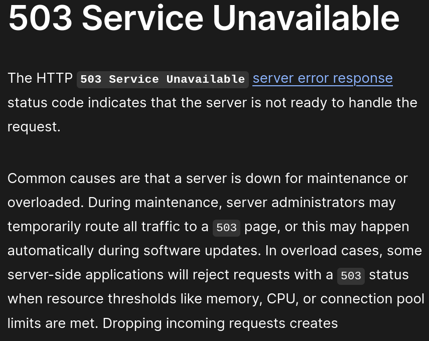 HTTP 503 에러는 일반적으로 다음과 같은 상황에서 발생한다.