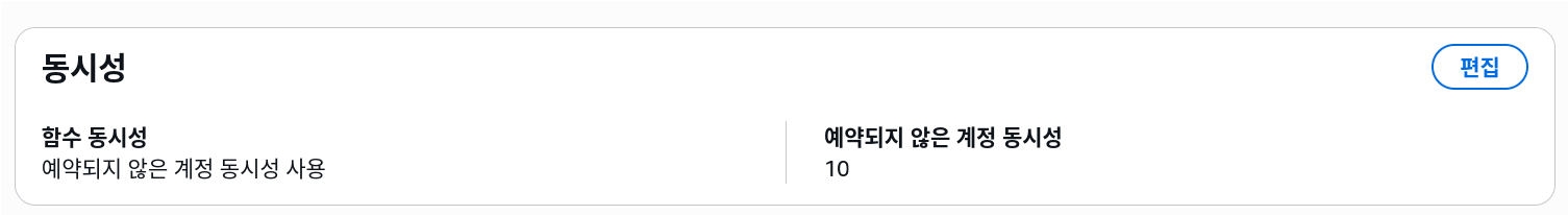 그런데, 예약되지 않은 계정 동시성이 10밖에 되지 않는다.
