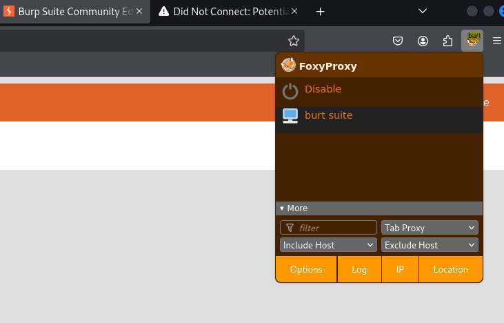 Burp Suite의 프록시 서버가 웹브라우저의 트래픽을 가로채기 위해선 웹브라우저에서 프록시 서버 설정이 필요하다. Firefox나 Chrome 등 대부분의 웹브라우저는 별다른 확장 프로그램을 사용할 필요 없이 설정 메뉴에서 프록시 메뉴를 직접 설정할 수 있다. 하지만, FoxyProxy와 같은 확장 도구를 사용하는 게 편리하다.