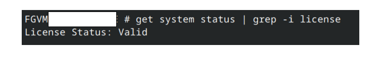 FortiGate 콘솔에서 아래 명령어를 통해 라이센스 등록 여부를 확인할 수 있다.