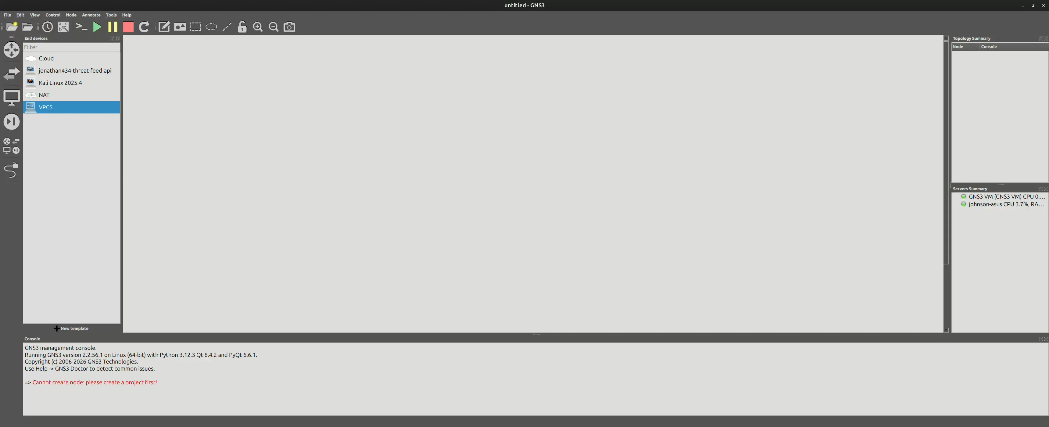 이후 GNS3에서 프로젝트를 다시 열자, 정상적으로 Fortinet 프로젝트가 실행되는 것을 확인했습니다.