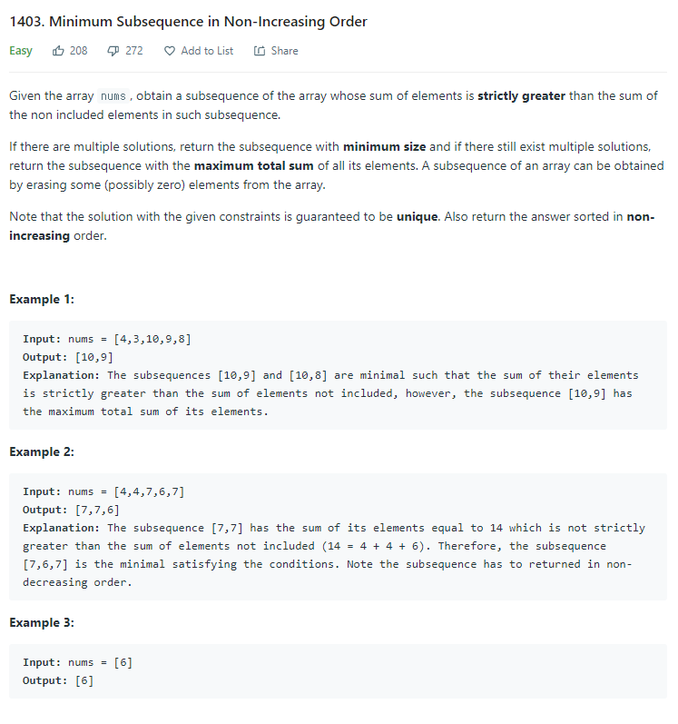 리스트에서 최댓값부터 뽑아야 배열의 총합보다 빨리 커지기 때문에 최댓값부터 리스트에 넣었습니다.