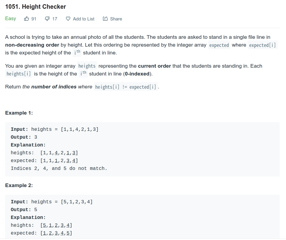Height Checker - LeetCode