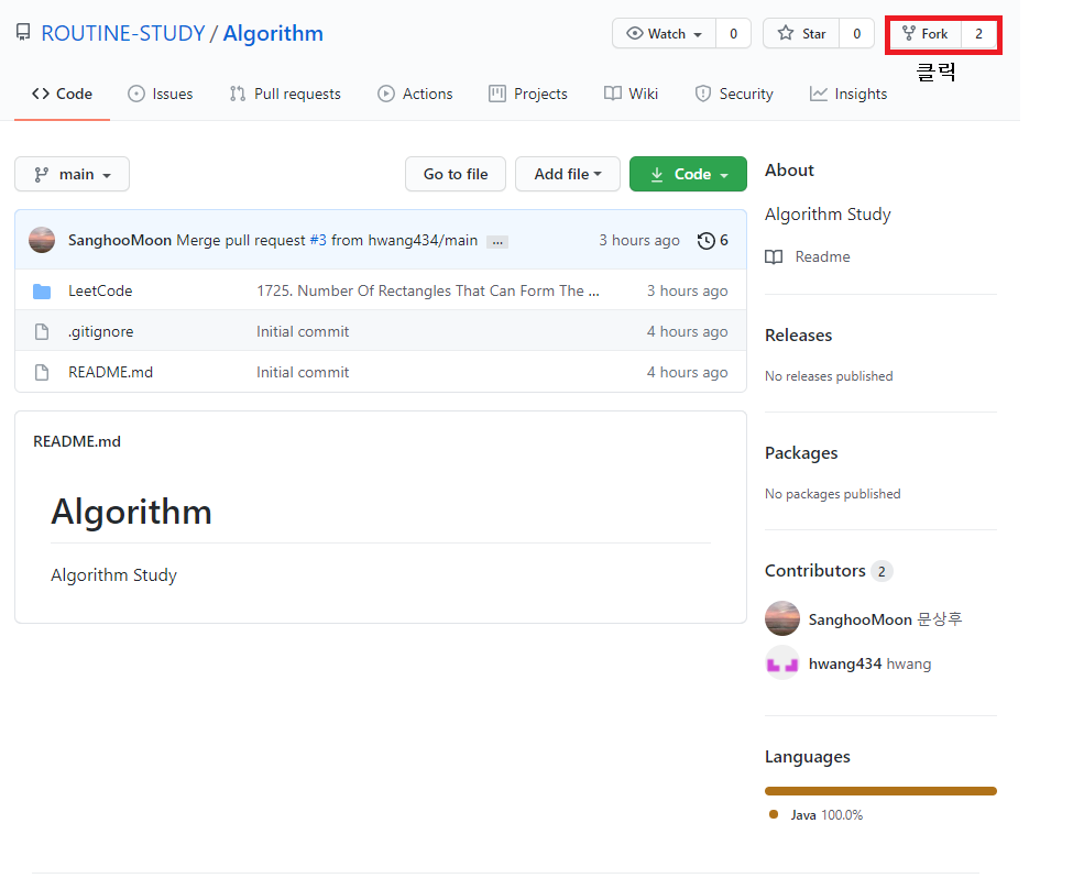 참여하고 싶은 프로젝트가 생기면 아마 그 프로젝트에 Push 할 권한은 없을 테니까 Fork 해야 합니다.