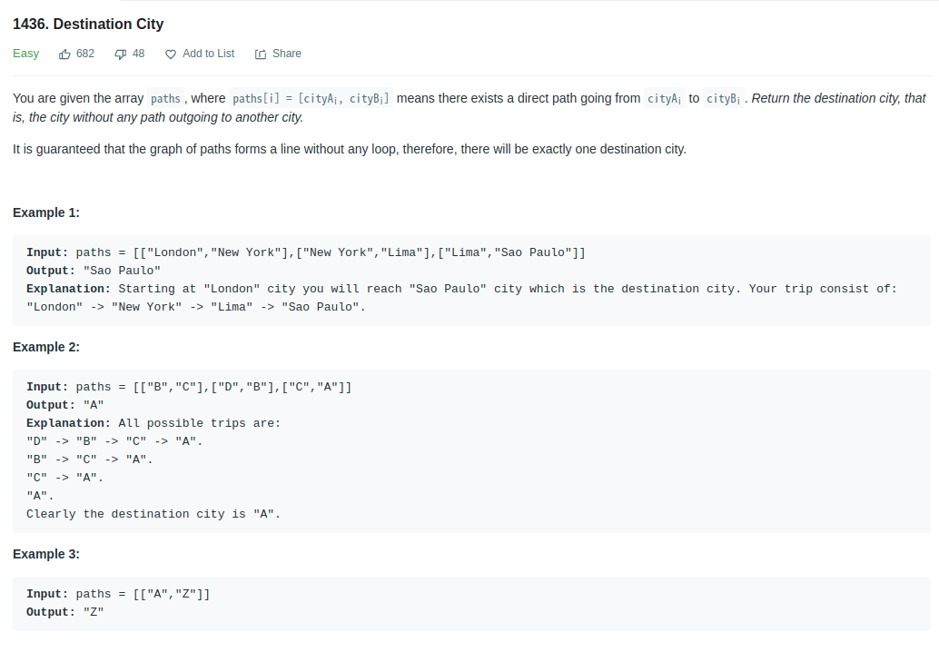 1436. Destination City