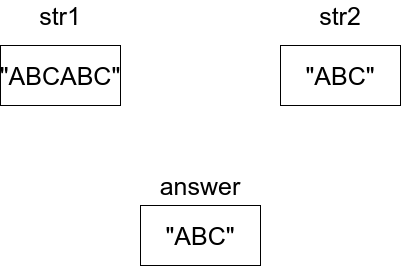 -> answer은 str1에서 두 수의 최대 공약수의 개수만큼 뽑은 문자열 "ABC"가 된다.