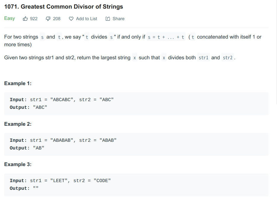 1071. Greatest Common Divisor of Strings