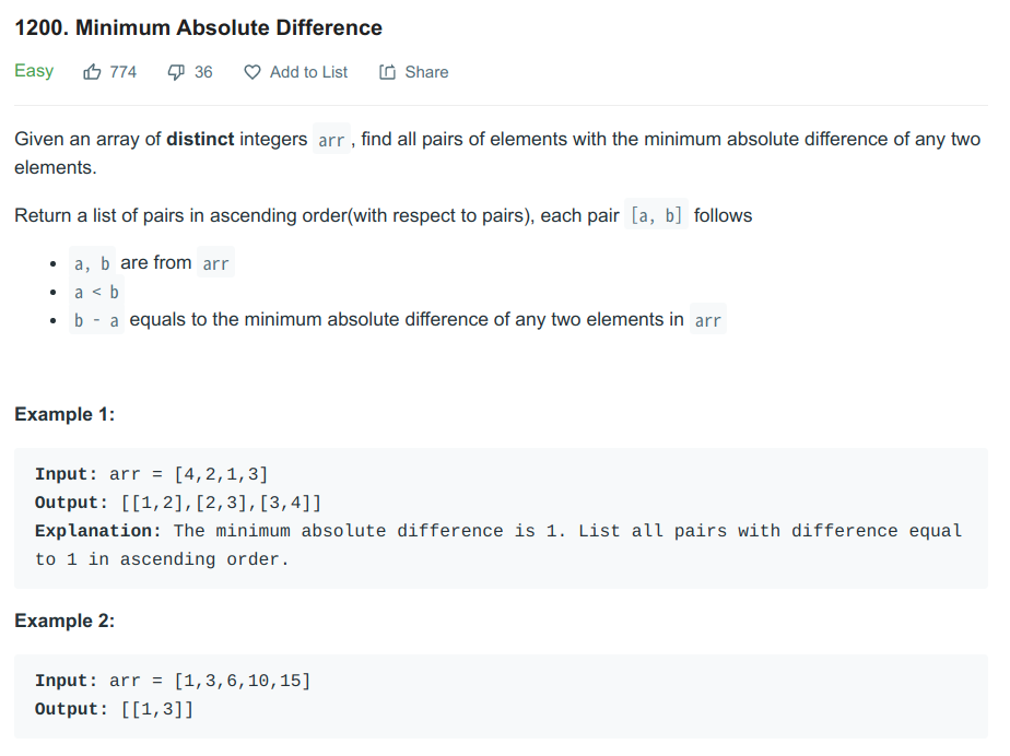 1200. Minimum Absolute Difference