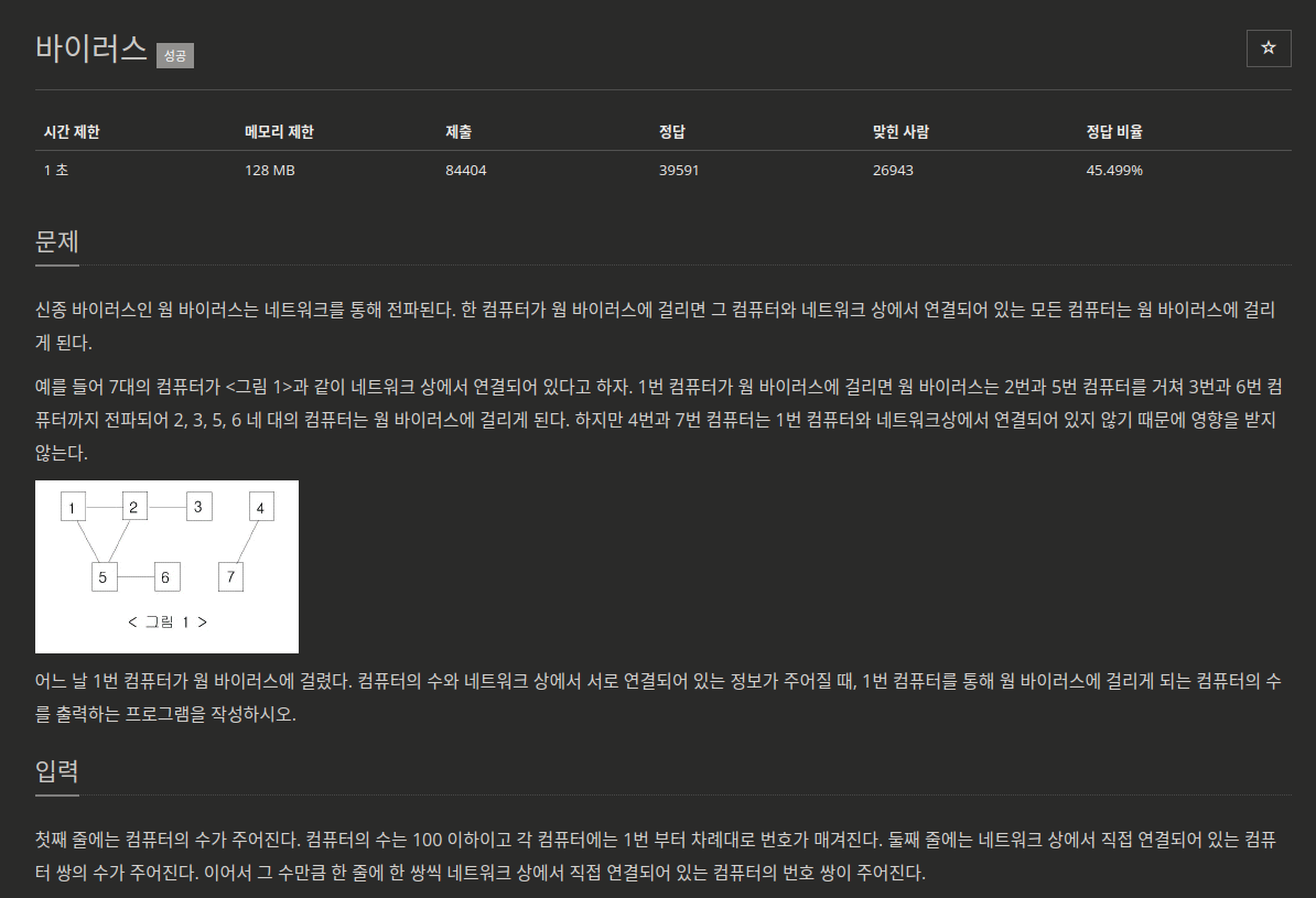 문제 출처 :https://www.acmicpc.net/problem/2606