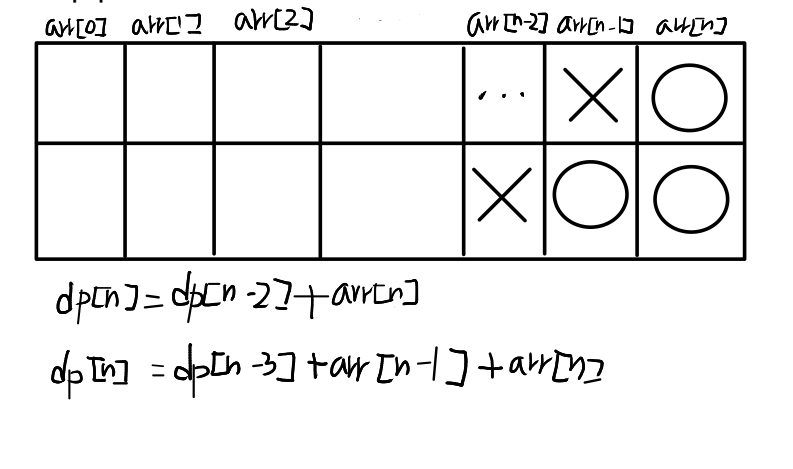dp[i] = Math.max(stairs[i] + dp[i-2], stairs[i-1] + stairs[i] + dp[i-3]);