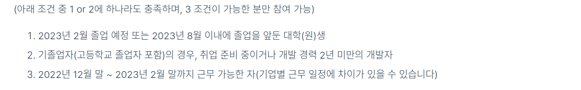 주니어/예비 개발자를 위한 WINTER CODING ❄️ 21개 기업이 함께 참여하고 있습니다. #스타트업#개발인턴십#정직원 전환시 사이닝 보너스 50만원#코딩테스트 Winter Coding은 학생 개발자, 졸업 후 고민