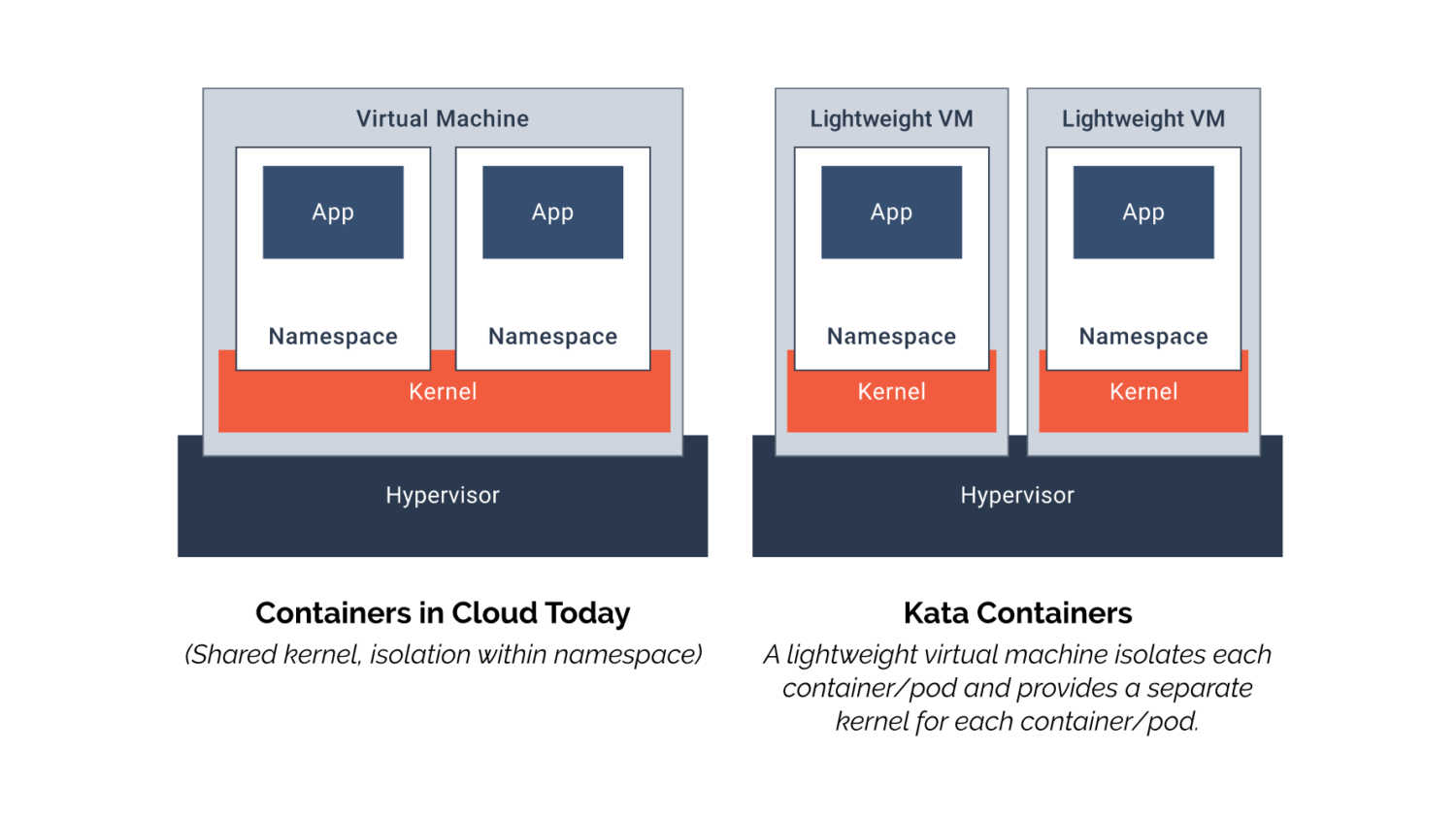 위와 별개로 **Kata Container(카타 컨테이너)**라는 오픈 소스도 있는데 여기선 컨테이너도 자신만의 커널을 가진다.