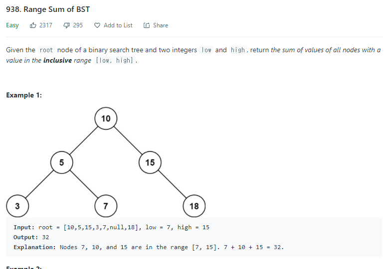 938.Range Sum of BST