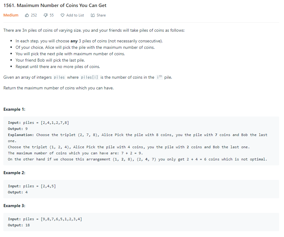 1561. Maximum Number of Coins You Can Get